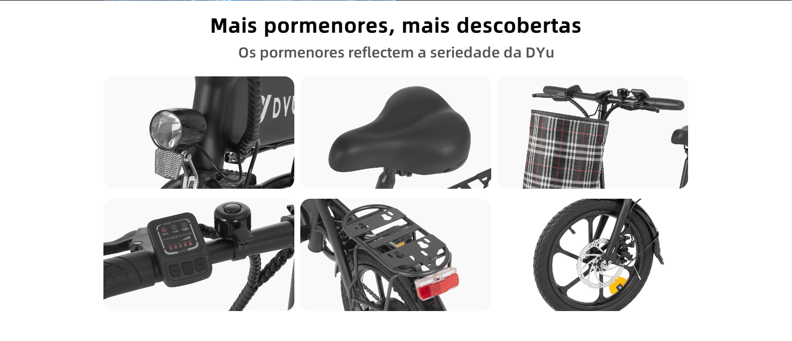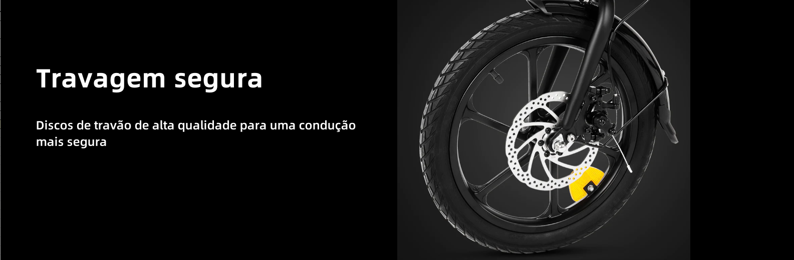 SEGURANÇA E CONFORTO: A e-bike DYU A1F PRO está equipada com pneus de 16 polegadas, bateria de alta capacidade de 7,5Ah e super motor de 36V / 250W. Os travões de disco duplos nas rodas dianteiras e traseiras melhoram muito a segurança. A e-bike está equipada com uma buzina eletrónica e luzes dianteiras e traseiras para garantir uma viagem segura à noite.