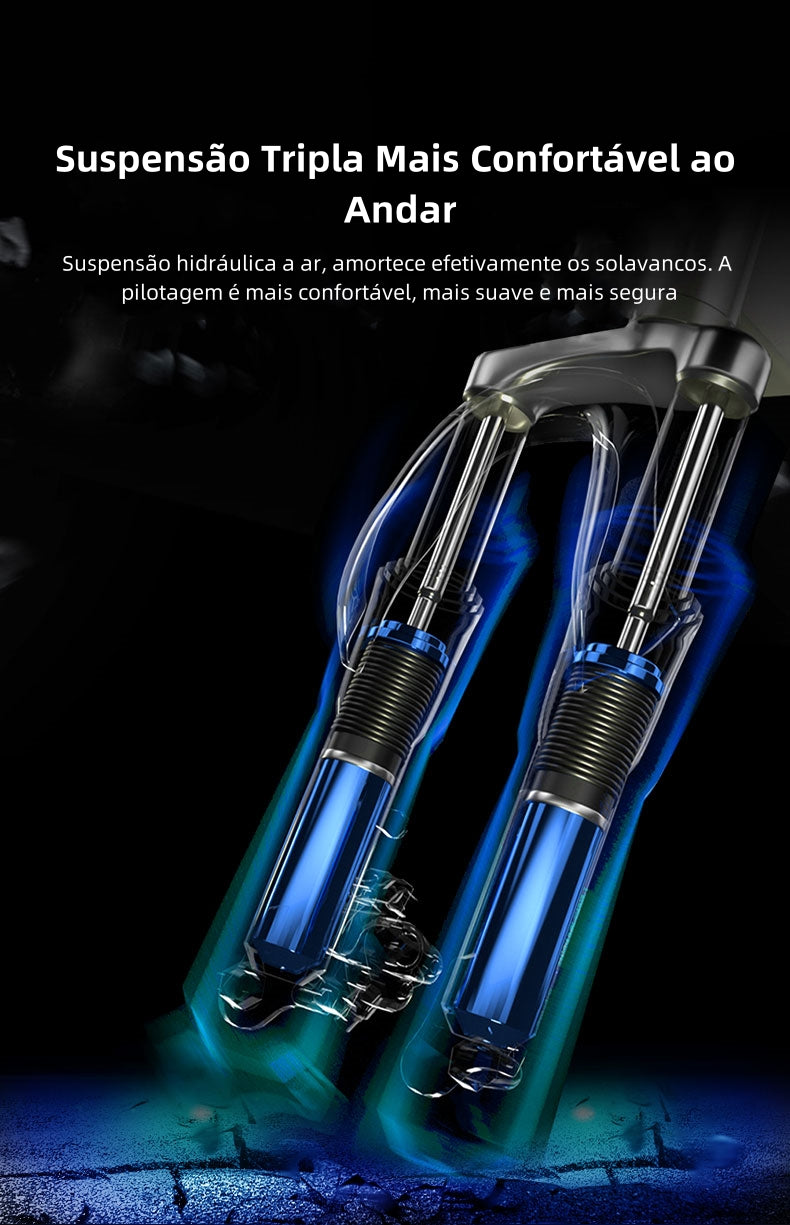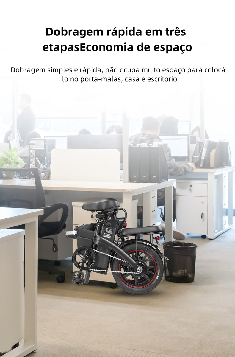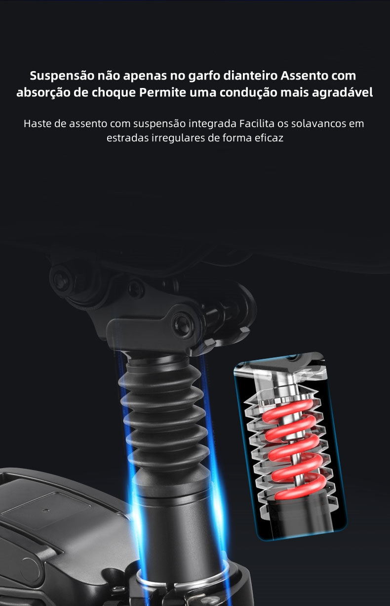 O design do porta-objectos montado na retaguarda elimina o incómodo dos animais de estimação e dos acessórios (pode fixar-lhe um cesto). Farol LED de 12V ajustável, com luz traseira, para uma condução nocturna mais segura.