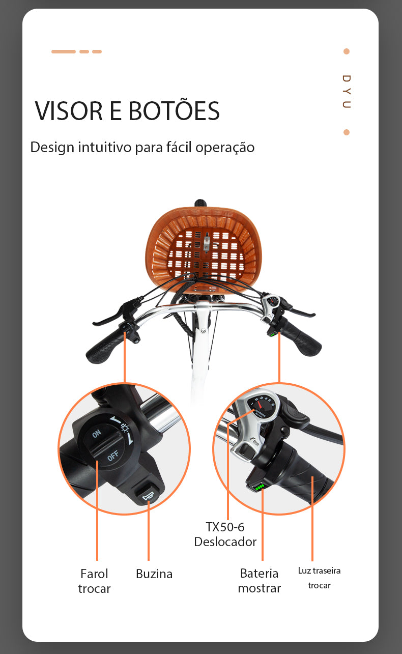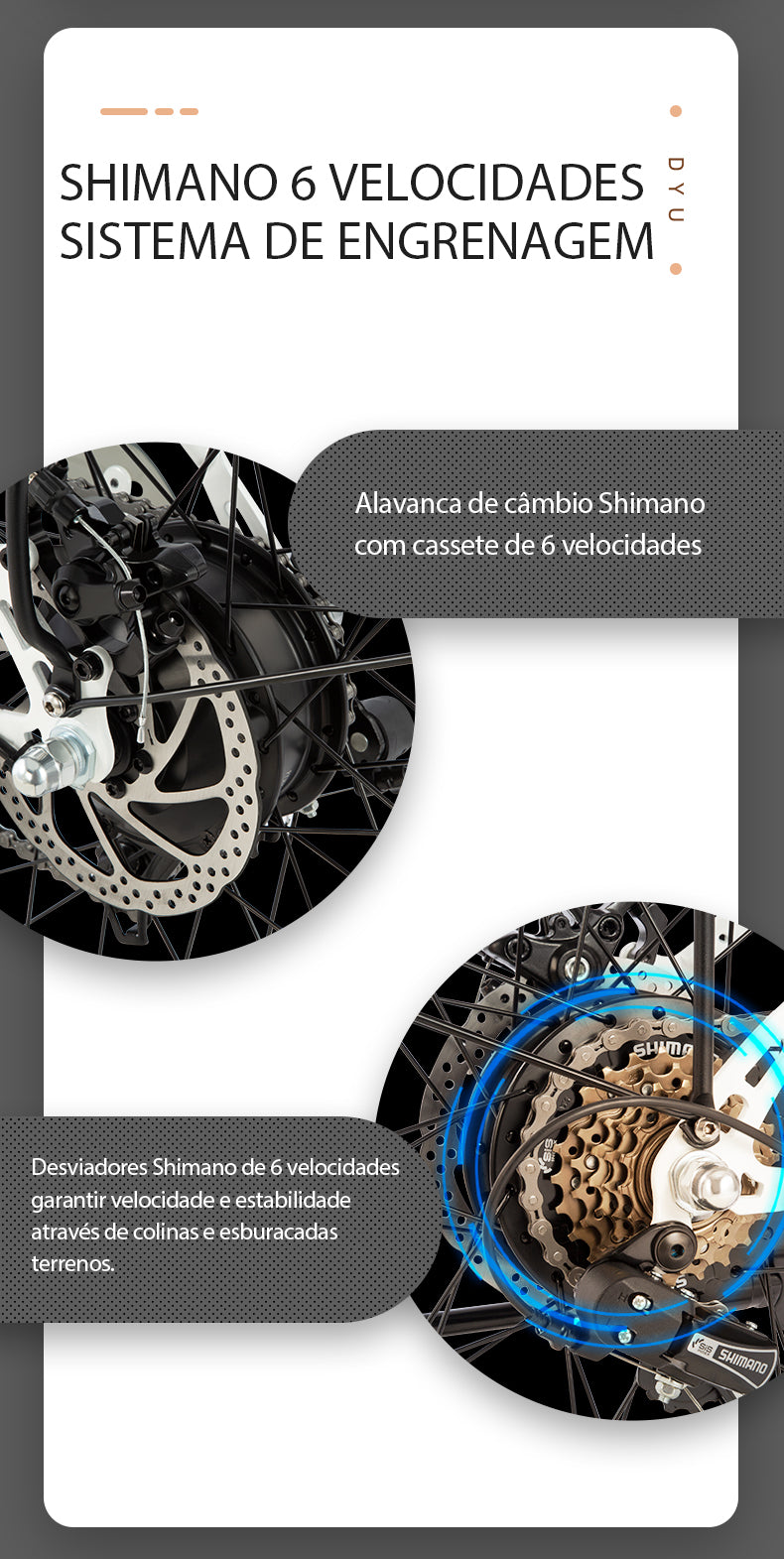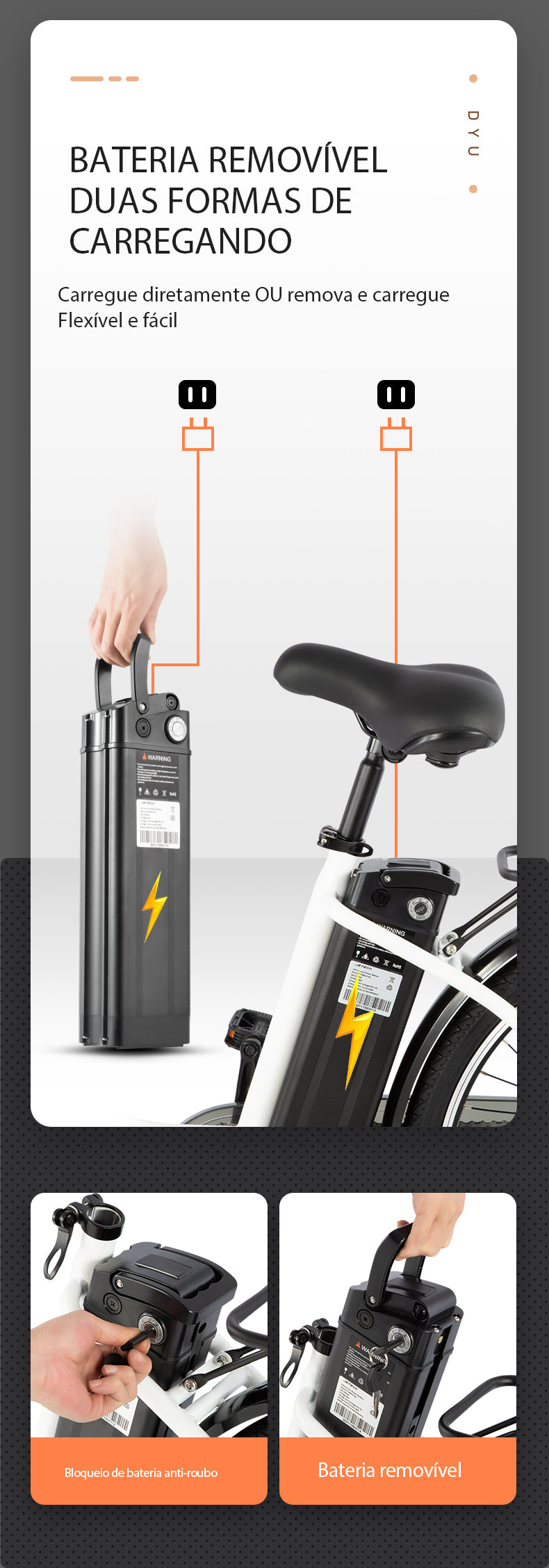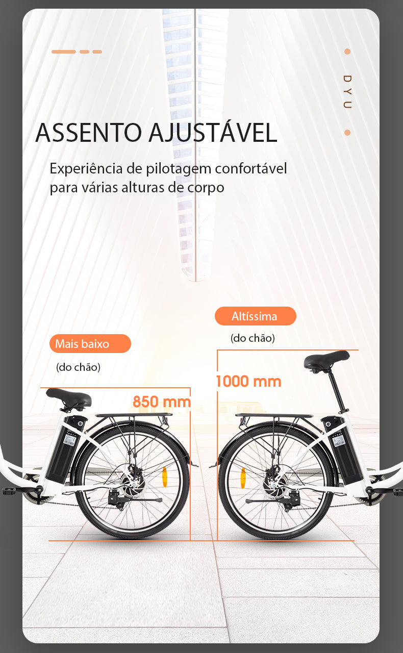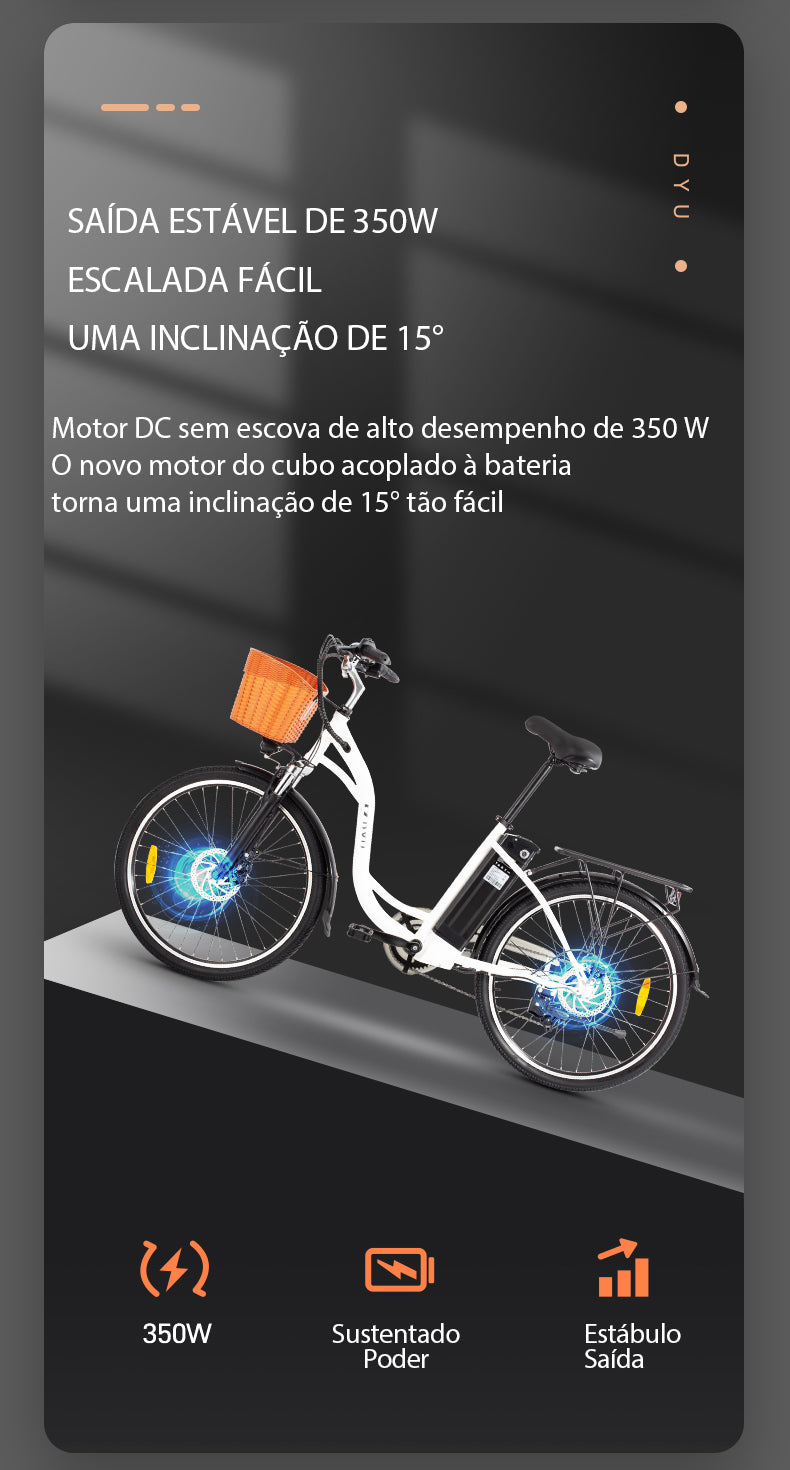 DYU C6 Bicicleta Elétrica - Potência 350W Bateria 36V12.5Ah Autonomia 40KM Freio a Disco - Branco