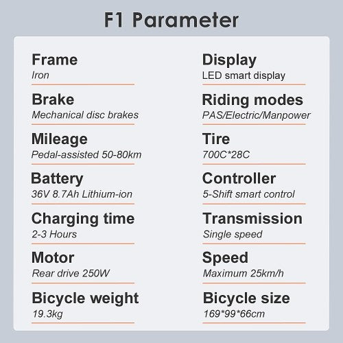 Bateria de lítio de 10AH permite um alcance de cruzeiro de 45-55km em modo puramente eléctrico, e 80-100km em modo de assistência de potência com carga completa.