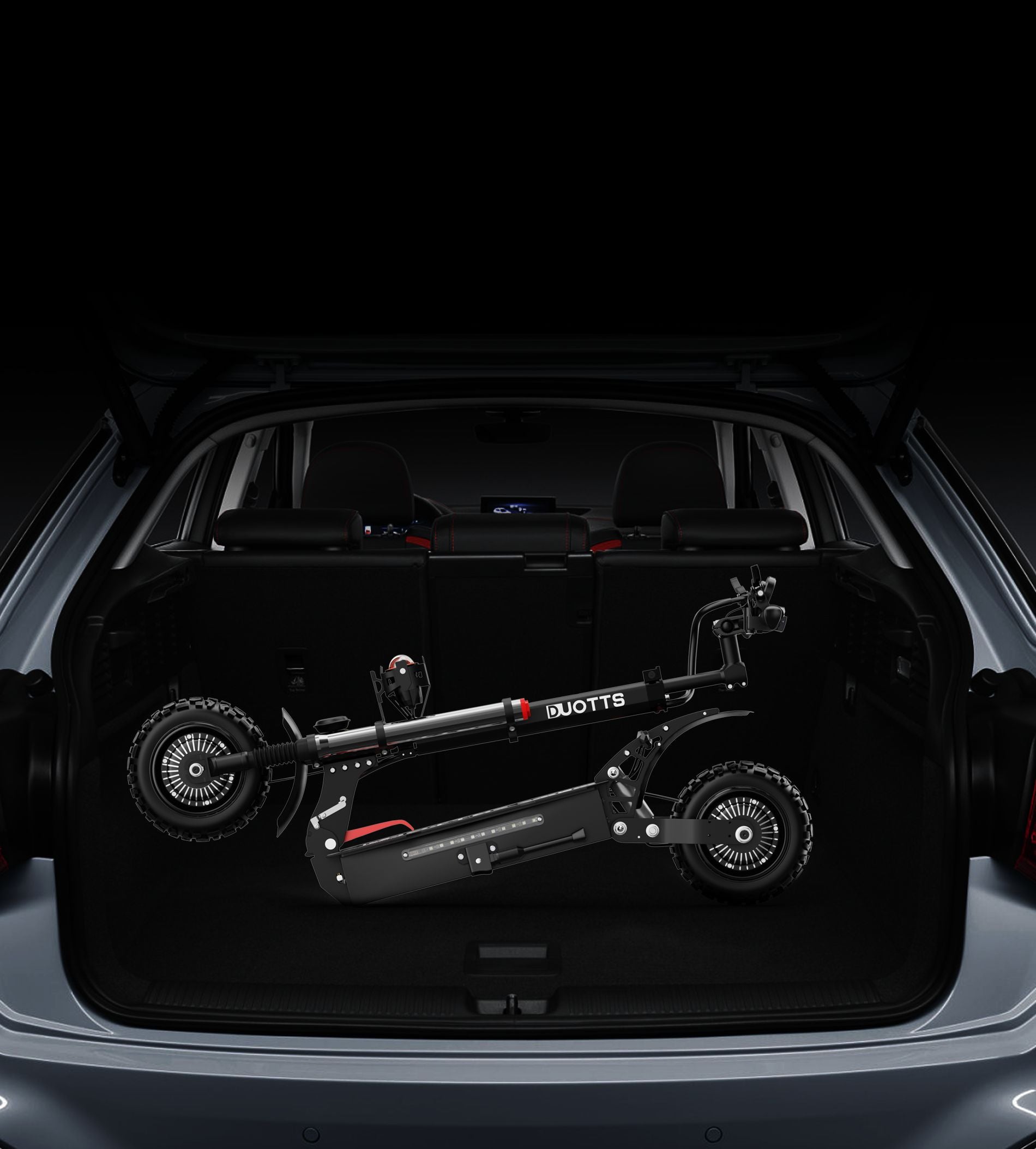 Os amortecedores de mola dianteiros e traseiros da D66 proporcionam uma condução suave e confortável. Os pneus todo-o-terreno de 11 polegadas proporcionam uma excelente tração e estabilidade, enquanto que a altura ajustável (120-140 cm) e a altura do selim (72-82 cm) satisfazem os condutores de diferentes tamanhos.