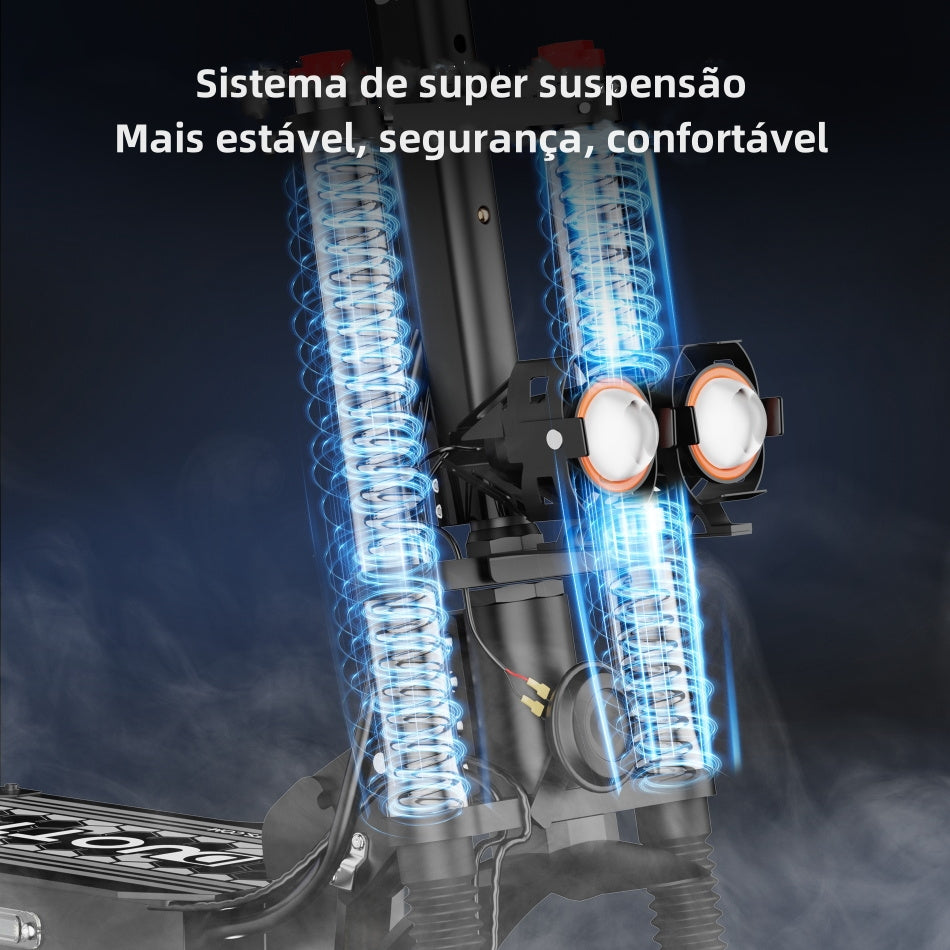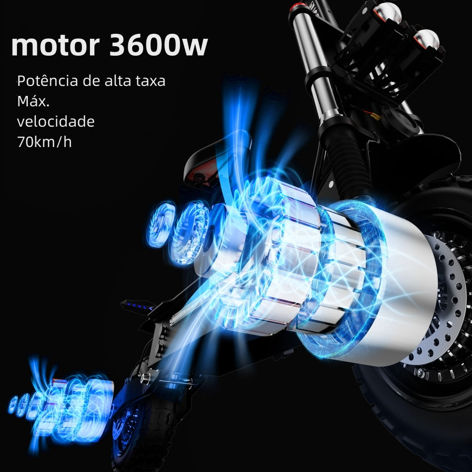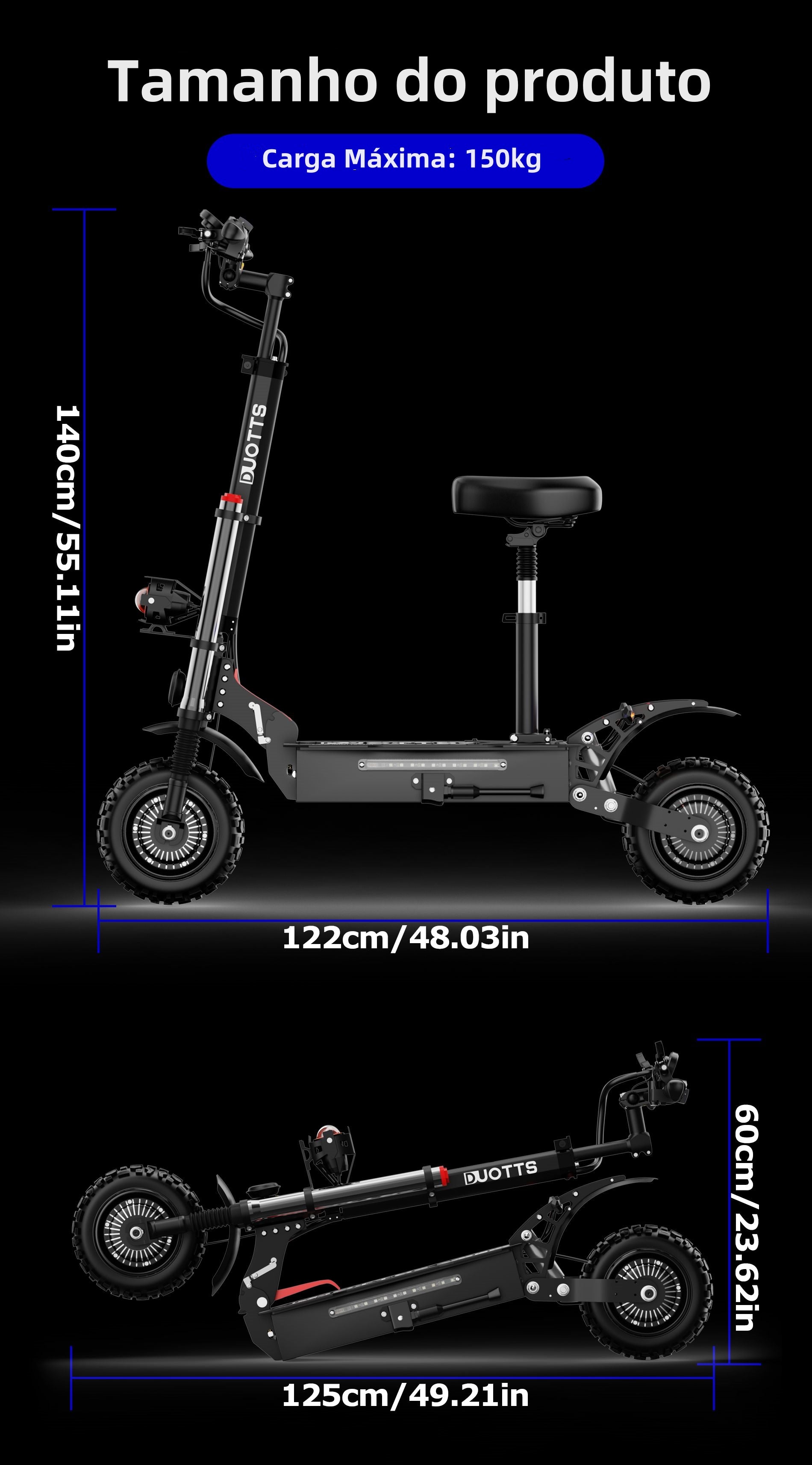 A trotinete eléctrica DUOTTS D66 é alimentada por um motor de 60V 3600W. Consegue lidar facilmente com inclinações de até 45°, tornando-a adequada para uma variedade de terrenos e condições desafiantes.